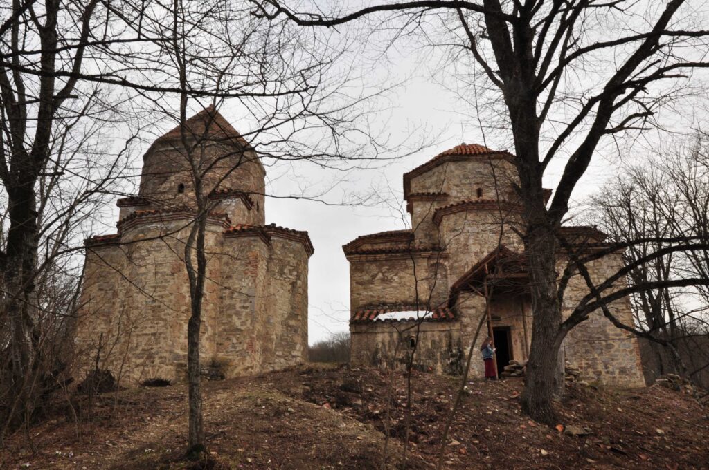 For our way back to Tbilisi we were lucky that our former driver Georgi was available (see Jvari Pass). While marshrutkas drive along the foot of the Tsiv-Gombori mountain range where most hamlets and villages spread (and customers reside), cars take the shorter route over the Gombori Pass. There is one more reason for us to choose the shorter route: the pristine chestnut forests of the Gombori mountains hide a cultural jewel, the Old Shuatma Monastery, one of the eldest Christian edifices in Georgia.