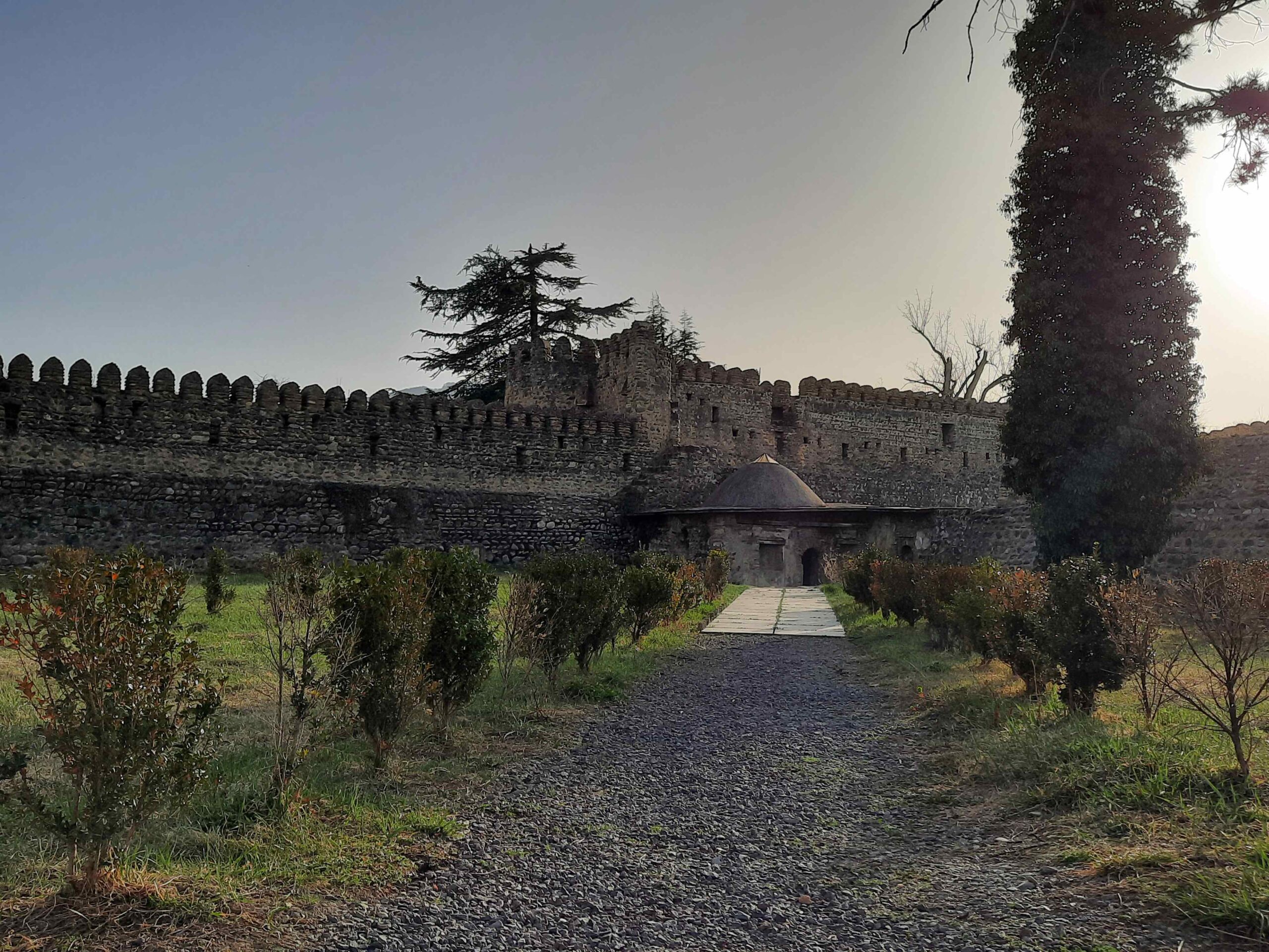 Telavi overlooks the fertile plains of the Kakheti region, where some of Georgia’s most famous wines are cultivated. First settled in the Bronze Age it raised to the capital of the Kakheti Kingdom in the 10th century AD, declined in the 15th and regained its importance during the 18th for a short duration. There is a fortress to visit, the biggest and presumably oldest tree of Georgia, a lively market, and a lot of traditional buildings from different epochs – we went, however, first for an opulent meal with khachapuri and, of course, a glass of wine.